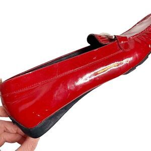 Vintage Stuart Weitzman Moccasins Loafers Patent Red Leather Silver Buckle 9.5