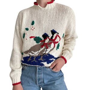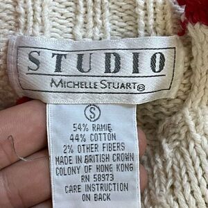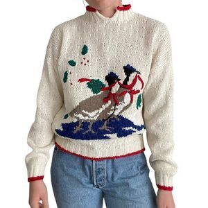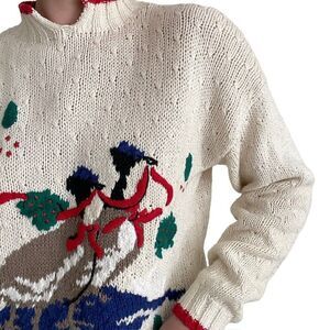 Vintage Studio 80s Womens Hand Knit Cotton Farm Duck Motif Sweater Sz S