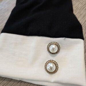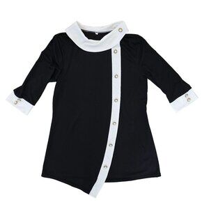 Vintage-Style Black & White Asymmetric Tunic top with pearl button detail size M