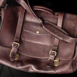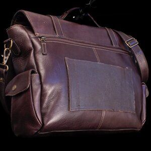 This leather messenger bag combines timeless design with functionality.