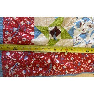 Enhance your home with this vintage-style patchwork quilt, featuring cozy farmhouse tones in red, blue, and green floral patterns. Handmade with care, this tied blanket offers warmth and charm. Perfect for adding a touch of nostalgia to your space.
