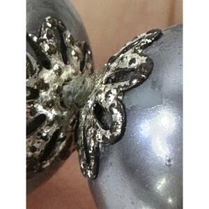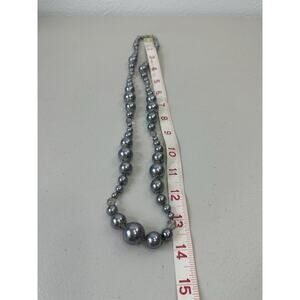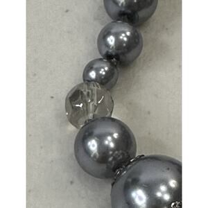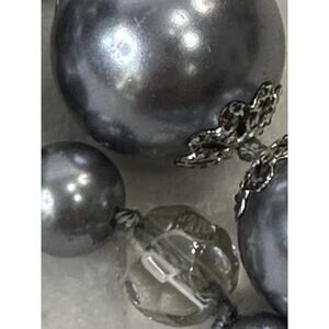 Knotted, metal ends, lobster clasp, faux gray pearl beads, vintage, elegant, 80’s, 90’s, graduating beads, clear spacers, evening, event, dinner, costume, fashion, dressy,