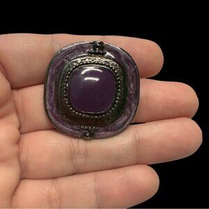 Vintage-Style Purple Enamel & Silver-Tone Clip-On Earrings With Textured Detaili