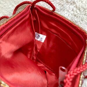 Vintage-Style Red Beaded Evening Bag Clutch Purse with Strap Hand Beaded
