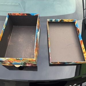 Add a touch of creativity to your home party supplies with this artistic collage storage box. Featuring a vibrant mix of colors, it's perfect for organizing and adding flair to any event.