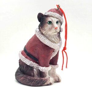 Vintage-Style Resin Cat Ornament Santa Outfit 3.5” Christmas Figurine