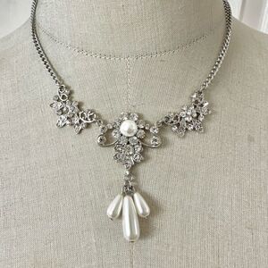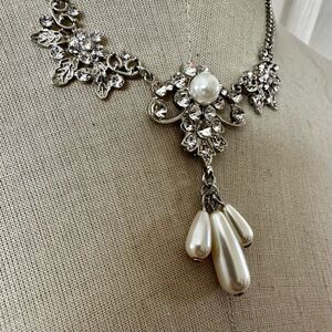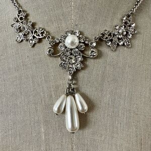 #BridalJewelry #RhinestoneNecklace #FauxPearlNecklace #StatementNecklace #WeddingJewelry #FormalJewelry #VintageInspired #CostumeJewelry