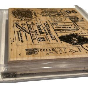 Vintage-Style Stampin Up! Ephemera Background Large Rubber Stamp Wooden Block