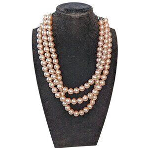 Vintage-Style Triple-Strand Faux Pearl Necklace with Adjustable Chain 16 Inches