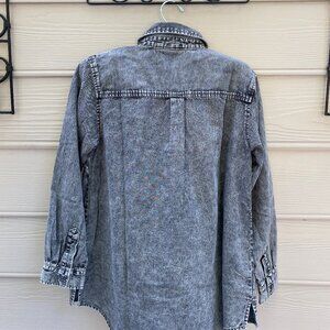 Vintage-Style Washed Denim Shirt w/ Pockets