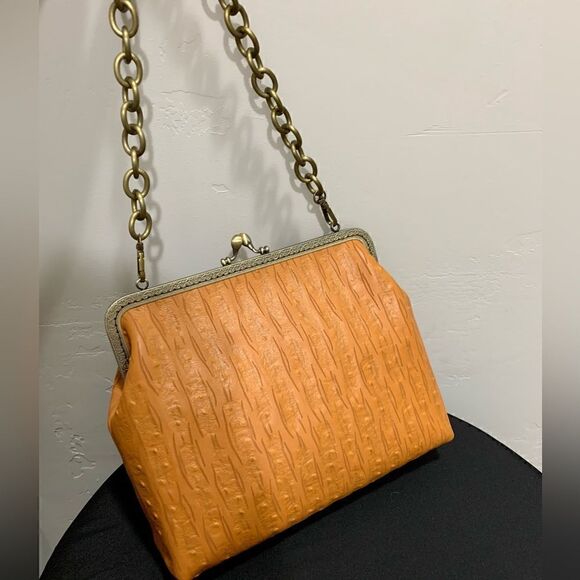 Vintage Style Handcrafted Genuine Embossed Leather Kisslock Handbag Set
