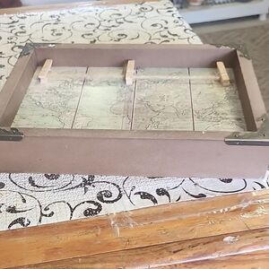 Display your cherished memories with this vintage-style map photo frame. The brown frame adds a classic touch to any decor. It is approximately 7 inches byv9 inches.