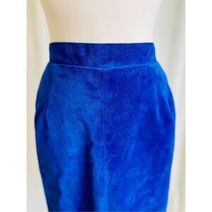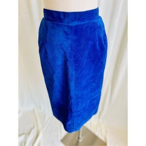 Women's Straight Midi Skirt Rayon Back Slit Work Office Casual Blue Size 16