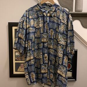 Vintage Summa Sea Ocean Theme Mens Silk Button Down Hawaiian Shirt sz XL EUC