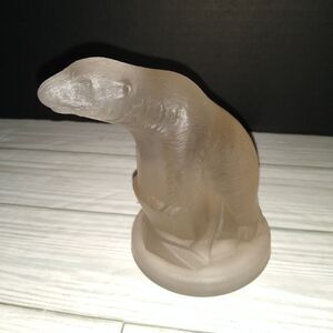 Vintage Summit Vaseline Art Glass Frosted Satin Hand Press Polar Bear Figurine. Has some wear from age and storage. Sold as is.