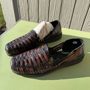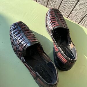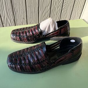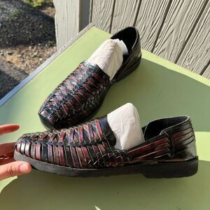 Vintage Sunsteps Black & Burgundy Woven Leather Slip-On Shoes Size 11 India