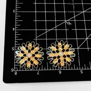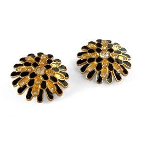 Vintage Swarovski Gold Enamel Crystal Sunburst Earrings
