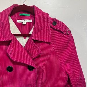 TOMMY HILFIGER JACKET // Vintage 90's Hot Pink Fuchsia Corduroy Double Breasted Peacoat Size M 2000's Hipster
