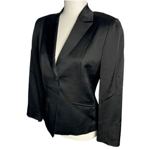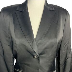 Vintage Tahari Wool Blend Blazer Jacket S Black Lined Rhinestone Button Notch