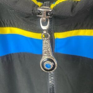 Excellent like new condition. Features colorful back graphic. Striped sleeve. Full zipper with colorful pull. Side pockets. Fully lined. No holes, stains or snags. Smoke free home. Bundle and save! Check out my 5 star reviews! Fast and careful shipping!