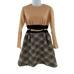 Vintage Tan and Black Plaid Dress