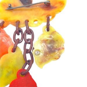 Vintage Tangerine Cherry Chartreuse Golden Bakelite Leaf Tassel Brooch and Clip