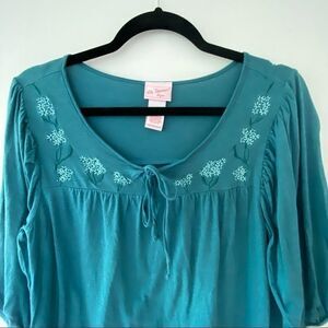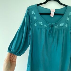 Vintage Teal lingerie Peasant Floral Embroidered Top