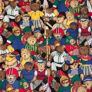 Vintage IVY CLUB CLASSICS FOR WOMEN teddy bear graphic vest. Lightweight vest cotton all over print front with black buttons. Black satin back with cotton print tie. Excellent vintage condition. No size label. Size XL