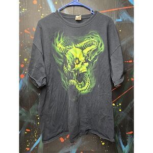 Vintage Tee Shirt 2X Goth Skull Snake Skeleton Glow in the Dark T-Shirt Black