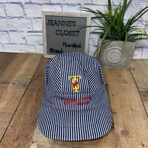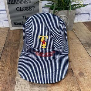 Vintage Texas State Railroad Train Conductor Hat Cap Railroad Pin Stripes USA.