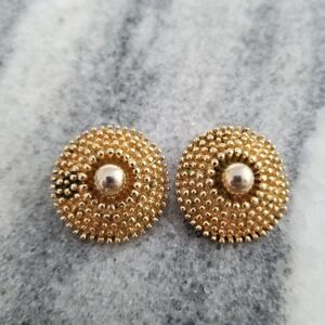 Vintage Textured Gold Tone Dome Clip On Earrings, Retro 80s Style, Estate