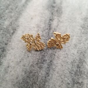 Vintage Textured Gold Tone Posts, Etched Design, Minimal, Estate