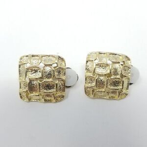 Vintage Textured Square Clip On Earrings, Gold Tone Woven Design, Retro Estate