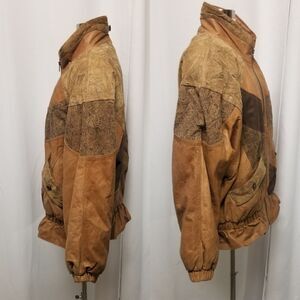 Vintage The Bad Lands Tan Patchwork Bomber Jacket Boho Woman's Large