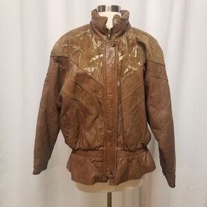 Vintage The Jay Jacobs Tan Patchwork Bomber Jacket Boho Woman's Small