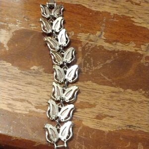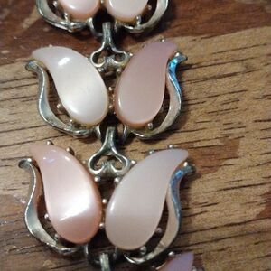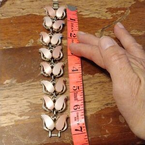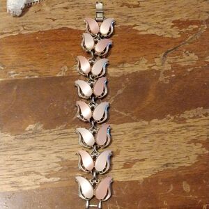 vintage ,pink and silver toned metal bracelet. Appx 7"