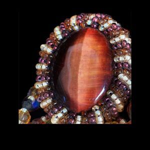 Vintage Tiger eye agate crystal hand beaded large 1980’s hand crafted large pin