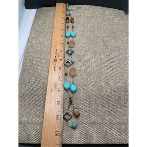 Vintage Tigers Eye Gem Beaded Turquoise MOP crystal Necklace Beaded Necklace 30”