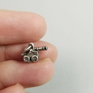 Vintage Tiny Cannon Shape Charm Pendant, Silver Tone, Old Fashioned, Estate