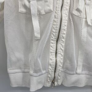 Vintage Together White Perforated Jacket 80’s 90’s. Ribbed cuffs and hem, two front Utility pockets neck snap for full coverage. One small yellow spot on front as pictured - not noticeable and I have not attempted stain removal. No size tag, selling as a medium. Please see measurements for accurate fit!