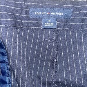 Stylish Tommy Hilfiger navy pinstripe shorts featuring convenient zipper pockets. Perfect for casual outings.