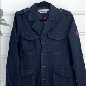 Vintage Tommy Hilfiger Military Inspired Dark Denim Utility Jacket.