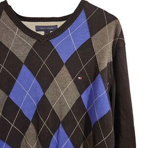 Vintage Tommy Hilfiger Argyle Pullover Men's V-Neck Sweater Large