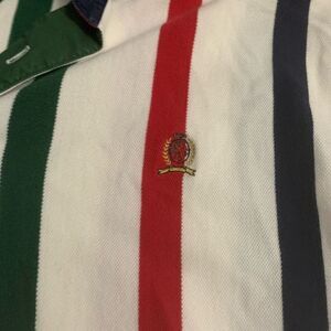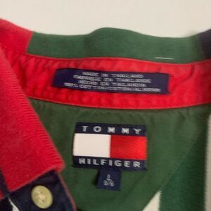Mens vintage multicolored vertical striped polo top, mens size large. By Tommy Hilfiger. Excellent vintage condition. Mens size large. Chest 22.5"