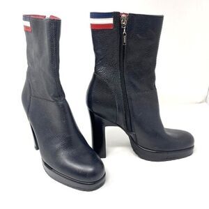 Vintage Tommy Hilfiger womans Black leather heel ankle booties 5.5M plat…