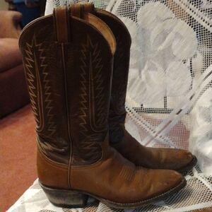 bicolor women's boots, vintage Tony Lama boots. no size, please refer to measurements. heel to toe 11 " height 12" heel 1 1/2". Based on my boots, I would say size 9