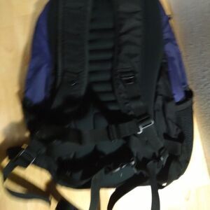 Vintage TravelSmith Hiking Camping Backpack - 3 Zipper Compartments - Side Mesh Pockets - Padded Back For Comfortable Carrying, Made in USA - Measures 20" x 6" x 6" - Excellent Condition, No Flaws - Royal Blue Color