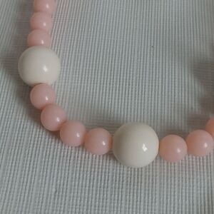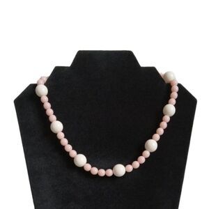 Vintage Trifari Crown Signed Pink & White Beaded Lightweight Fashion Necklace