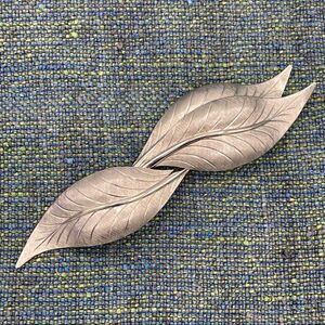Vintage Triple Leaf Silver Tone Brooch Pin