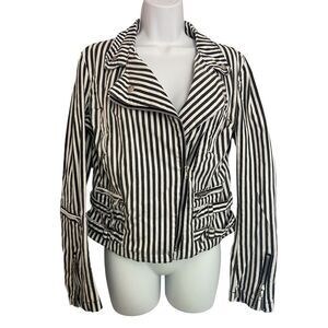 Vintage Tripp NYC Black and White Striped Moto Jacket Women’s Size M
